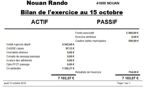 Ce bilan constitue aussi le compte de résultats. La comptabilité est normalisée et utilise la nomenclature européenne pour les associations, nomenclature qui n’est guère parlante pour la plupart des adhérents. Dans un souci de transparence, Nouan-Rando préfère donc publier ce bilan par activités.