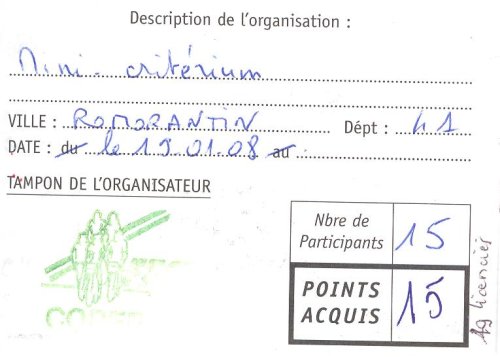 | Mini-critérium | Romorantin | 15 janvier | 15 | 15 | |